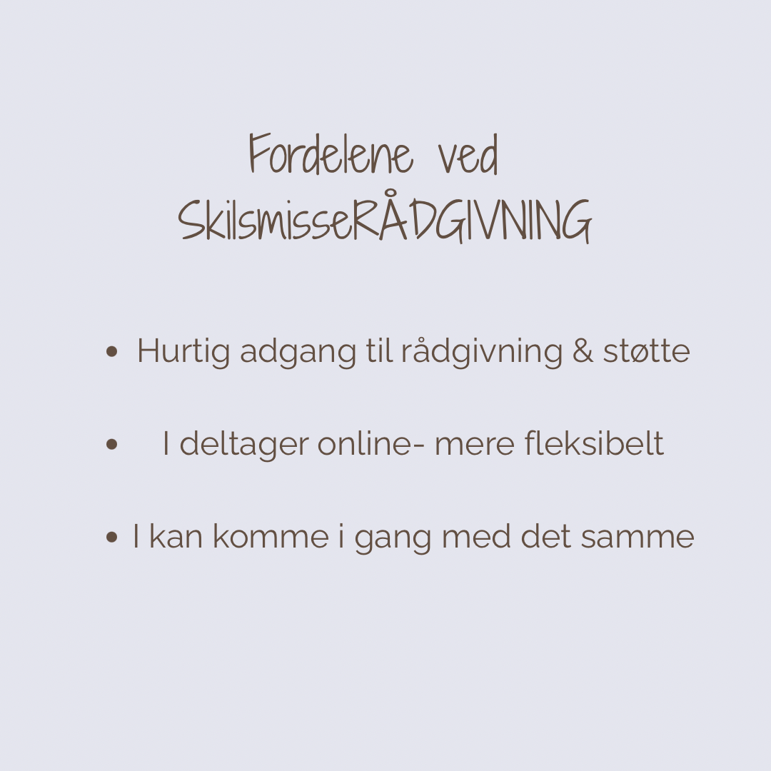 Det er ikke terapi, men vejledning og støtte til, at I får landet nogle aftaler I begge kan have det godt med- og ikke mindst jeres børn.